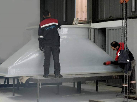 Chaudro Plus maîtrise la fabrication d’équipements bi-composants en thermoplastique et stratifié, une combinaison qui permet d’allier la résistance chimique du thermoplastique et la fibre de verre pour des performances optimales.